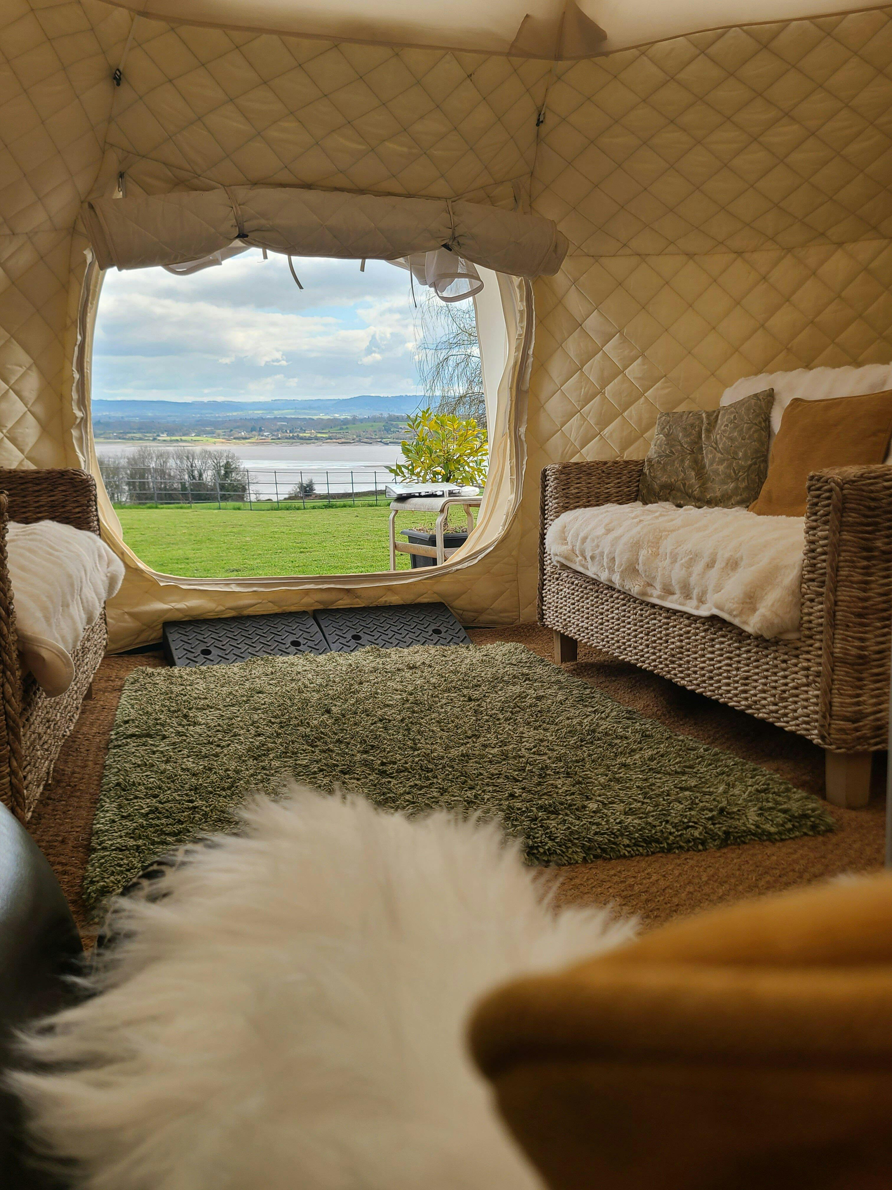 The Stargazer has 360 degrees of transparent panels located around the roof canopy to give the best view of the sky with a clip up curtains to maintaining privacy within.